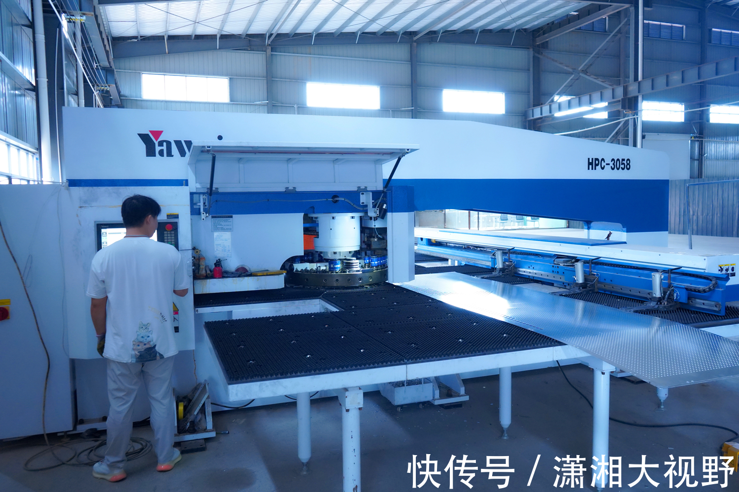 据张鹏介绍,公司成立至今,先后引进美国、德国、日本、瑞士等国的先进生产线,配套高速雕刻、转塔冲床、激光切割、双曲拉伸、双曲压弧、折弯、焊接等各类先进钣金加工设备及全自动日本兰氏、台湾金马表面涂装生产线。“现在我们的机器设备领先,拥有全自动的喷组线,生产效率较之前提升了80%。”